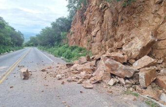 Desmoronamento de pedras atinge a pista da PB-262, na Serra do Teixeira