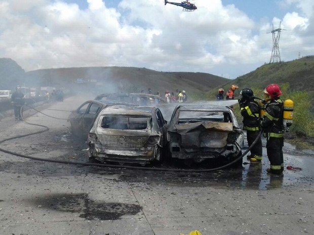 Os bombeiros foram acionados por volta das 11h30, devido ao incêndio que atingiu uma área extensa da vegetação. As altas chamas dificultaram a visibilidade dos motoristas na pista, o que ocasionou o acidente. Segundo os bombeiros, após a colisão, houve uma explosão incendiando seis veículos envolvidos.