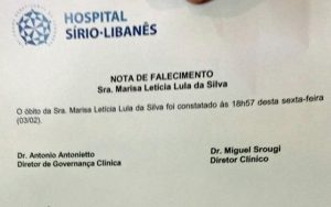 Seguindo o protocolo oficial para constatar a morte cerebral, os médicos submeteram dona Marisa a dois testes: o primeiro ocorreu às 12h05 e o segundo, às 18h05. O protocolo determina que o último exame seja conduzido por outro médico para comprovar a perda definitiva e irreversível das funções cerebrais. O óbito foi constatado às 18h57, segundo boletim médico.