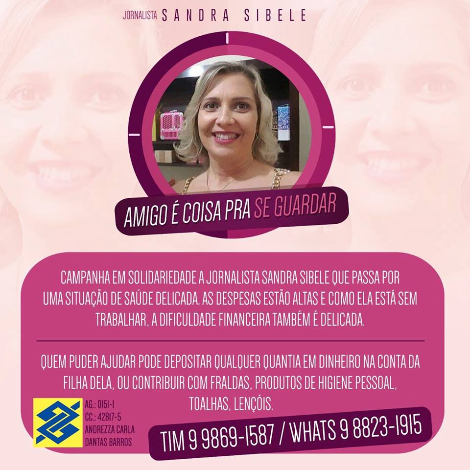 A publicitária Sandra Sibele está precisando de ajuda para dar continuidade ao tratamento ao qual vem se submetendo. Ela é portadora de câncer no pulmão há 5 anos e nos últimos meses o quadro clínico de agravou e ela está se submetendo ao tratamento de radioterapia.