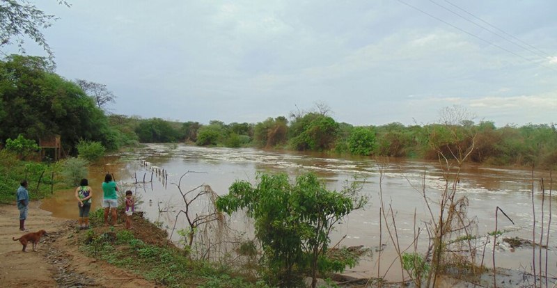 Após as fortes chuvas no Serão da Paraíba durante a madrugada desta sexta-feira (10), o Rio Piancó amanheceu com grande volume de água desaguando no açude de Coremas