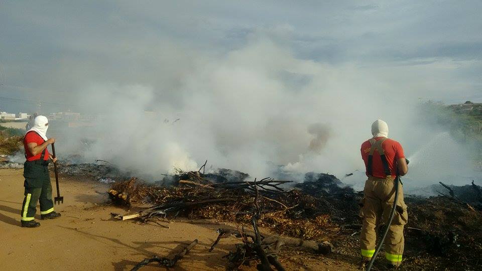 Na tarde deste domingo, 05, foi preciso a intervenção dos bombeiros, pois havia muitos galhos verdes e folhas espalhadas pelo chão e quando tocaram fogo a fumaça tomou de conta do local.