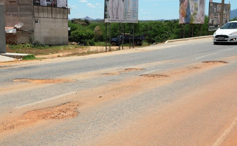 Próximo ao cruzamento de acesso à Rua Felipe Camarão, vizinho às obras de construção do Hiper Queiroz, a água das chuvas está se acumulando, danificando o asfalto e criando crateras no chão. Os buracos estão obrigando os condutores a realizarem ziguezagues, no entanto, relatos são de que muitos caem dentro dos buracos, danificando os automóveis.