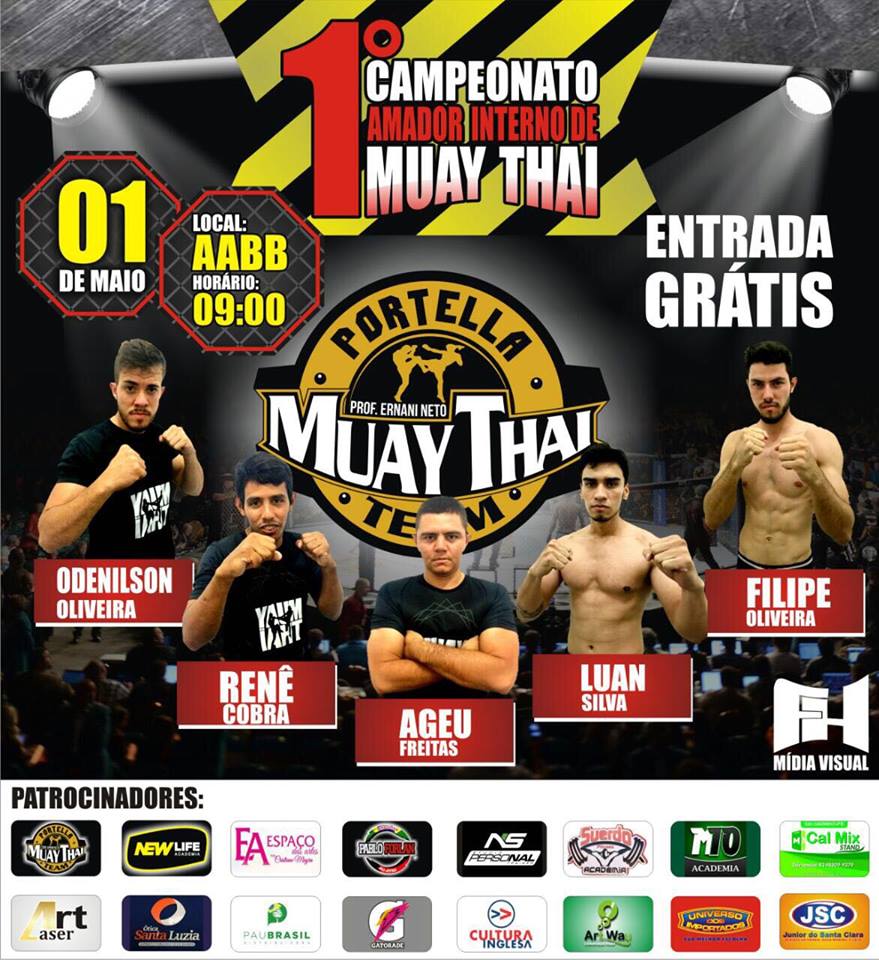 No dia 1° de maio vai acontecer na AABB, em Patos, a partir das 9 horas da manhã, o primeiro campeonato amador interno de Muay Thai da Portella Team, que tem Ernani Neto como professor.