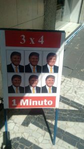 Na entrada do Foto Alarcon o cliente se depara, de cara, com a imagem do “garoto-propaganda” Donald Trump, com seu indefectível topete, anunciando que a fotografia 3×4 fica pronta em um minuto.