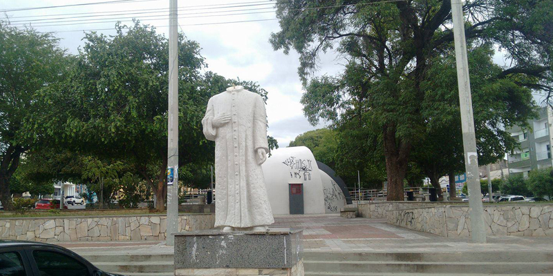 Não é a primeira vez que acontece da estátua do Monsenhor Manuel Vieira, localizada em nome da escola de mesmo nome, na Praça Edivaldo, no centro de Patos, amanhecer sem cabeça.
