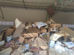 Embora não esteja pronto ainda, o galpão que está sendo construído pelo geógrafo Francisco Velasquez recebeu o material recolhido, onde o serviço de embalagem está sendo realizado.