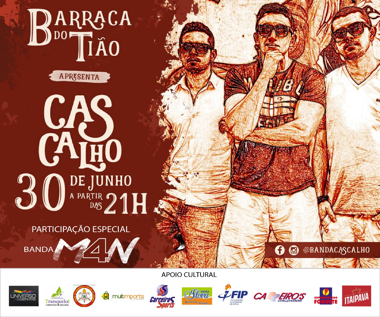 Nesta sexta-feira, dia 30, a tradicional Barraca do Tião, localizada no centro da cidade de Patos, realizará mais um evento alternativo com a banda Cascalho da cidade de Natal- RN.
