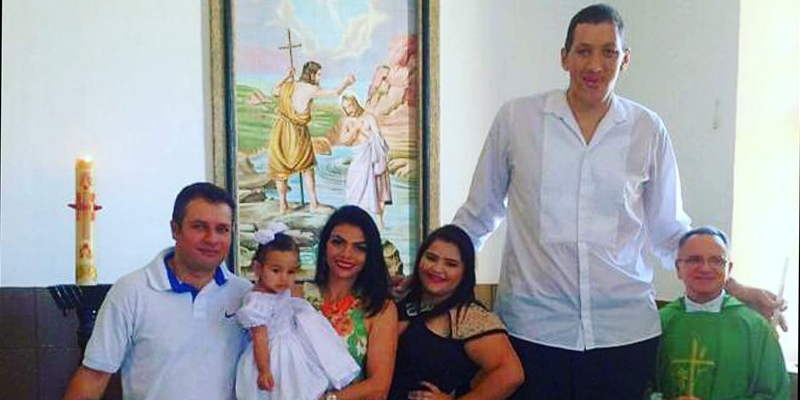Ninão tem 2,36 metros de altura e pesa 200 quilos. É o homem mais alto do Brasil e o segundo mais alto do mundo.