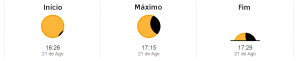 | Cidade | Início | Máximo | % | Pôr do Sol |