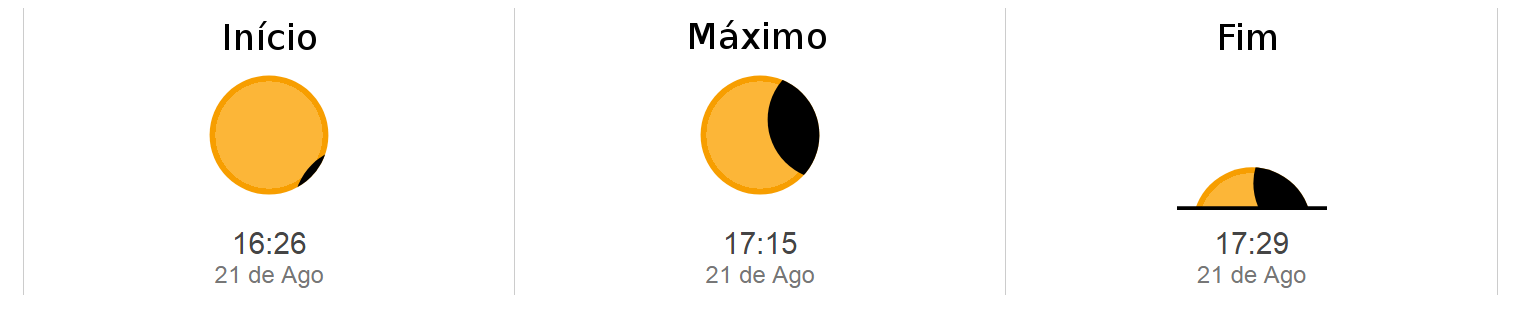 | Cidade | Início | Máximo | % | Pôr do Sol |