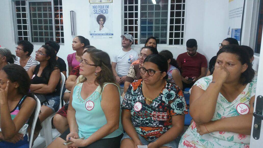 O evento foi organizado pelos agentes de saúde da unidade Geraldo de Carvalho e contou com o apoio do Núcleo de Apoio à Saúde da Família (NASF) e com a participação do odontólogo Samuel Andrade; do médico Gustavo Medeiros, da enfermeira Lynara e a presença de muitas mulheres da comunidade.