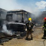 Por volta das 10:30 horas de hoje um incêndio se iniciou no local e atingiu vários ônibus, sendo que dois deles ficaram só as carcaças. Segundo o zelador o fogo se iniciou por conta do serviço que um soldador estava fazendo em um dos ônibus com um maçarico. “O fogo começou de repente e logo se alastrou e ficou incontrolável, só os bombeiros puderam resolver”.