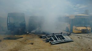 Por volta das 10:30 horas de hoje um incêndio se iniciou no local e atingiu vários ônibus, sendo que dois deles ficaram só as carcaças. Segundo o zelador o fogo se iniciou por conta do serviço que um soldador estava fazendo em um dos ônibus com um maçarico. “O fogo começou de repente e logo se alastrou e ficou incontrolável, só os bombeiros puderam resolver”.