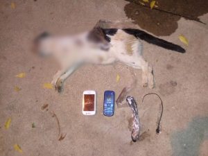 Um gato foi flagrado nessa quinta-feira (19) caminhando no Penitenciária Padrão de Cajazeiras, com dois celulares presos ao corpo. Um cachorro adotado pela penitenciária acabou matando o gato.