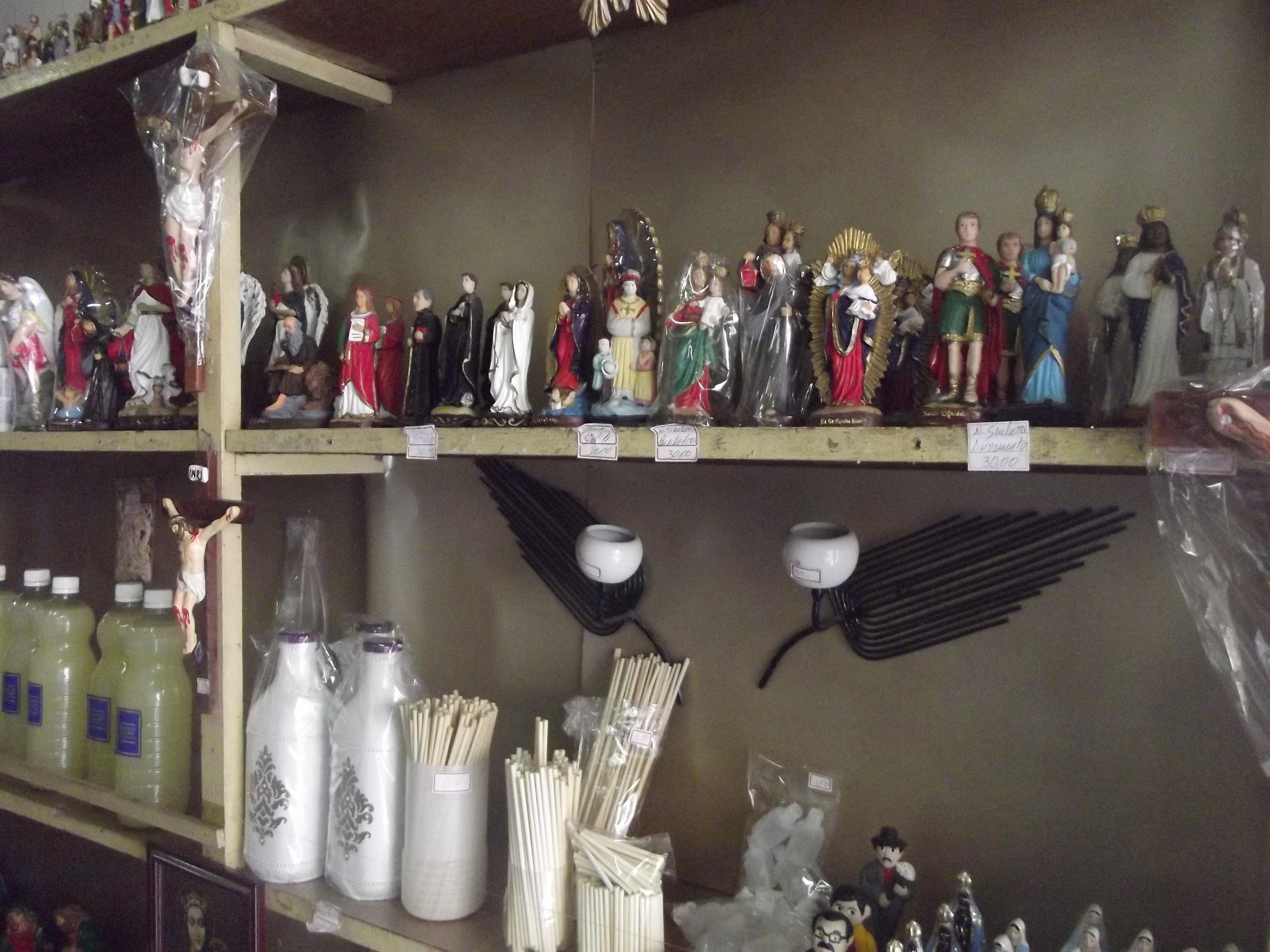 A loja oferece uma grande variedade de artigos religiosos: imagens de gesso, resina, borracha; sabonetes, velas ornamentais, óleos e muitas opções em essências utilizadas para aromatizar o ambiente.