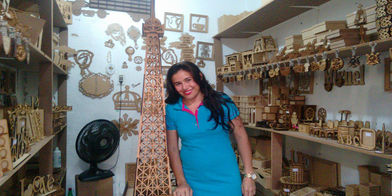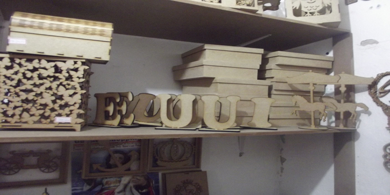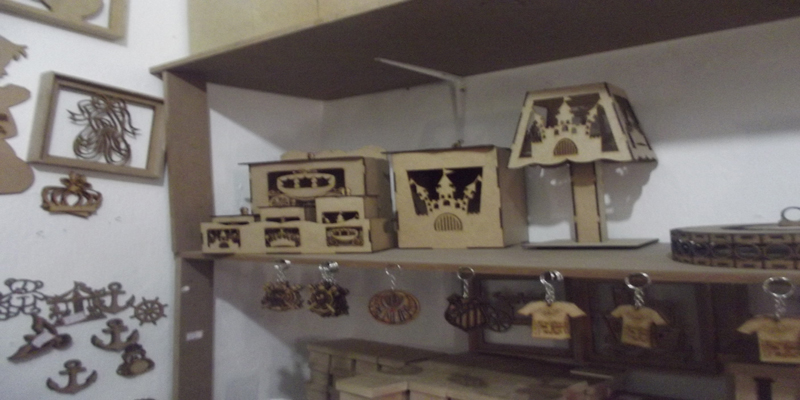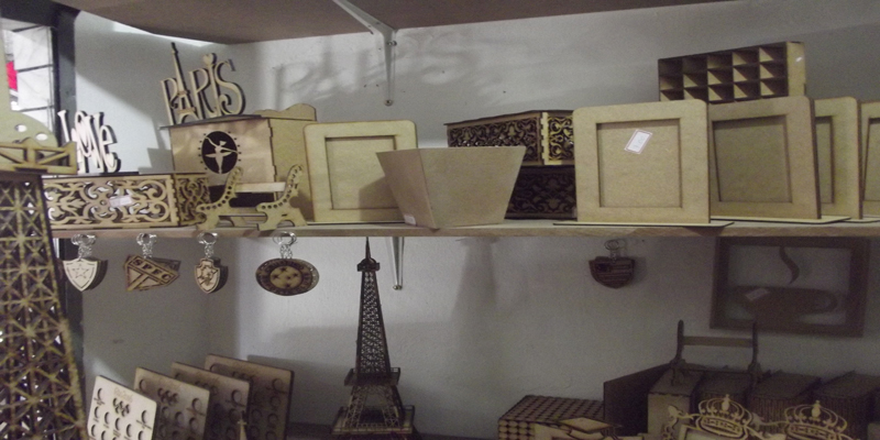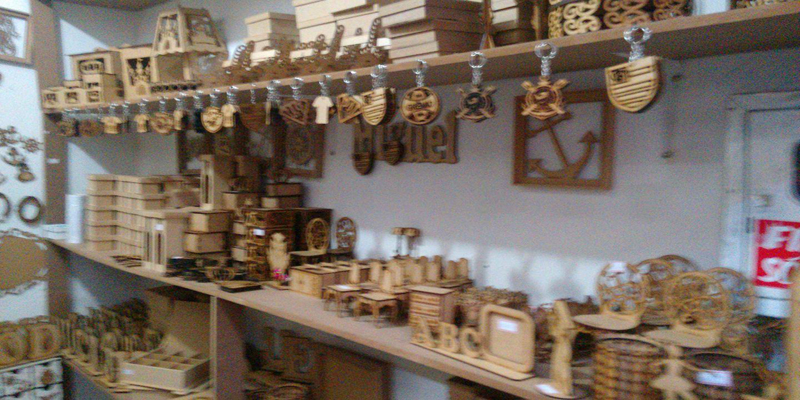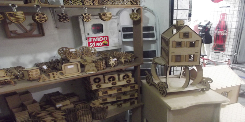 A loja é uma iniciativa do casal de artesãos Anderson e Roberta e oferece toda uma variedade de artigos feitos em folhas de MDF.