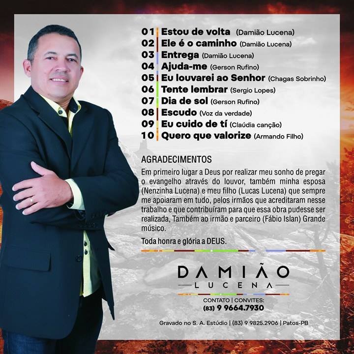 Quem tiver interesse em adquirir o CD ou quiser contratar Damião Lucena para agendar algum evento em qualquer igreja, o contato é 9.9664-7930.