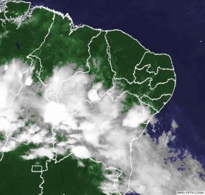 A imagem de Satelite GOES 13, as 17:30 hs (cinco e meia da tarde) dessa segunda-feira(13), indica a presença de uma frente fria no Litoral da Bahia, mas que está influenciando o tempo em todo o estado. Dessa forma, podem ocorrer chuvas de forma esparsa ou isolada em alguns pontos do Sertão e Alto-Sertão da Paraíba, entre os dias 14 e 17 de novembro.