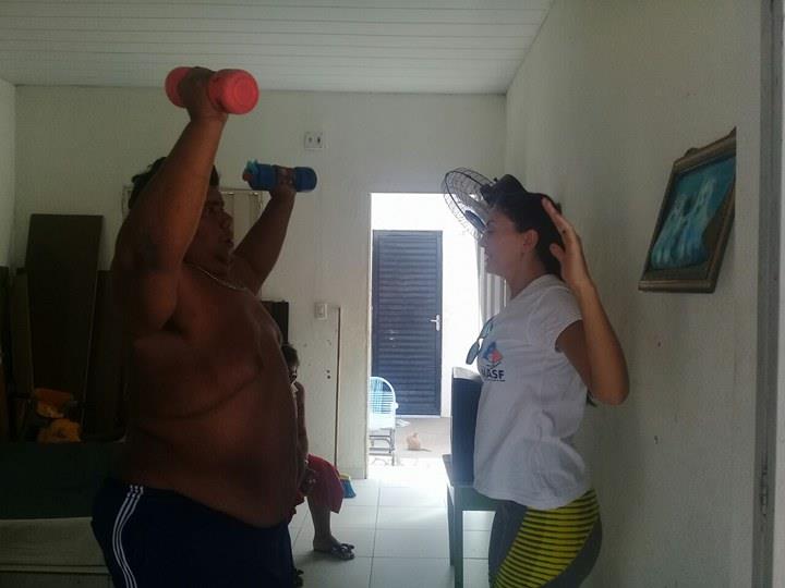 As equipes da Unidade Básica de Saúde Pedro Leandro e do NASF estão impressionadas com o desempenho do jovem Carlos Antônio dos Santos Freitas, conhecido por Carlinhos, de 30 anos, que apesar de ter voltado a engordar, saindo de 190 quilos em junho para 207 quilos em novembro, está conseguindo se sair bem, se movimenta muito melhor hoje, pratica exercícios físicos e está bem de saúde.