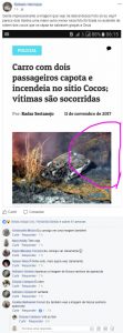 Comentários de internautas na rede social Facebook afirmam haver uma suposta imagem de uma Santa, aparentando ser Nossa Senhora Aparecida, sombreada por fumaça, em uma fotografia feita pelo site Radar Sertanejo, durante um incêndio de um carro que capotou na noite do sábado (11), na rodovia PB-400, entre os municípios de Cajazeiras e São José de Piranhas. No acidente, os dois ocupantes do veículo foram retirados com vida das ferragens por um homem e uma mulher, com o carro já em chamas. As vítimas sofreram queimaduras graves e foram reconduzidas para o Hospital de Trauma de Campina Grande, mas não resistiram e morreram.