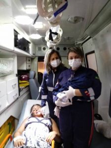 A dona Maria Aparecida estava com 40 semanas de gestação e com fortes contrações. Após prestar os primeiros socorros a paciente foi levada para Maternidade de Patos, onde daria à luz, entretanto o parto teve que ser feito ainda na viatura do SAMU.