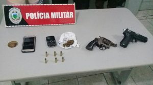 Policiais militares do 3° BPM realizaram, na noite de ontem (quarta, 13), apreensão de um revólver calibre 38, com seis munições intactas de mesmo calibre, um simulacro de pistola e uma quantidade de uma substância semelhante à maconha.