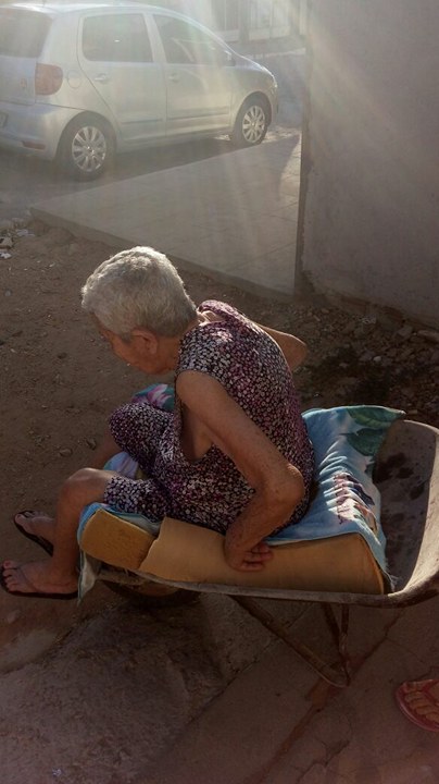 A idosa mora com uma das suas filhas, Dona Rita Vieira, e é sempre um problema quando a filha precisa sair de casa. Dona Elídia é levada num carrinho de mão, desses que se utilizam em construção, para a residência de uma de suas netas, por falta de uma cadeira de rodas. Para onde quer que precisem levá-la é o com o carrinho de mão que a transportam.