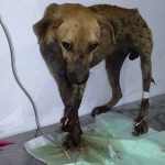 Mavi acionou outros protetores de animais e o cachorro foi resgatado para passar por tratamento. Na Clínica Veterinária Pet Bem, o médico veterinário Dr. Érico fez os primeiros procedimentos e relatou que o cachorro pode ter sido ferido por golpes de faca ou mesmo facão, pois o corte em uma das patas fez o animal perder parte do membro e ter um forte sangramento.