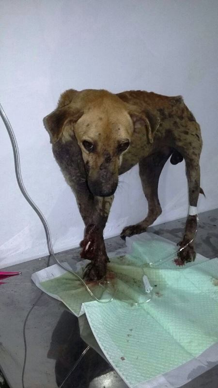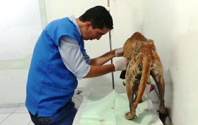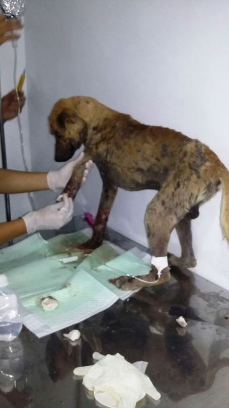 Mavi acionou outros protetores de animais e o cachorro foi resgatado para passar por tratamento. Na Clínica Veterinária Pet Bem, o médico veterinário Dr. Érico fez os primeiros procedimentos e relatou que o cachorro pode ter sido ferido por golpes de faca ou mesmo facão, pois o corte em uma das patas fez o animal perder parte do membro e ter um forte sangramento.