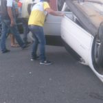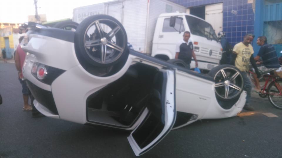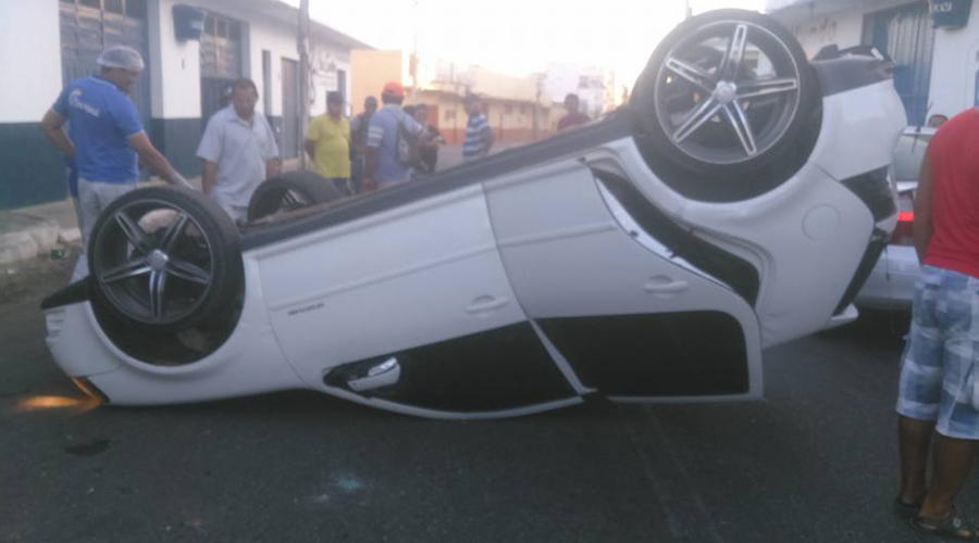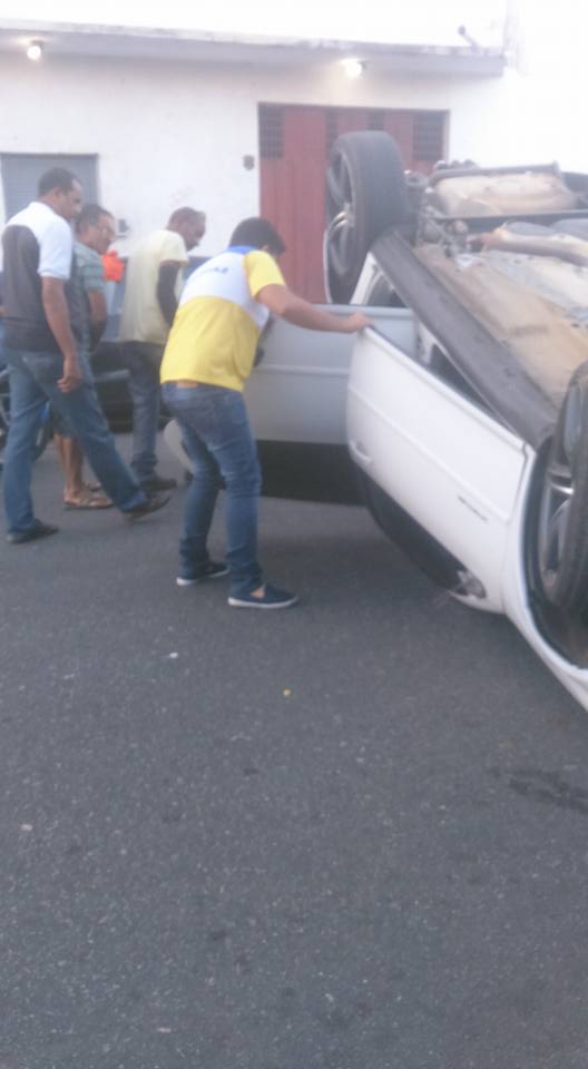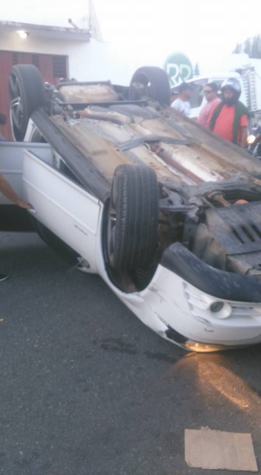 Por volta das 05h15min desta sexta, 29, um veículo modelo Golf, branco, com placa de Patos, capotou na Rua Vereador Joaquim Leitão, Centro de Patos, em frente ao depósito de água mineral Potiguar.