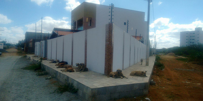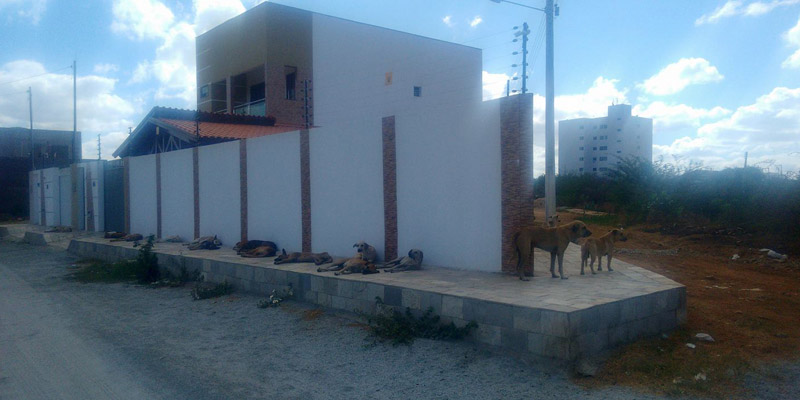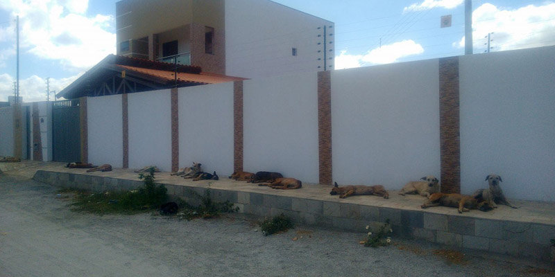 Na manhã de hoje (sábado, 06/01) quem passava na Rua Antônio Martins, no Nova Brasília, em Patos, se impressionava com o número de cães dormindo na calçada de uma das residências.