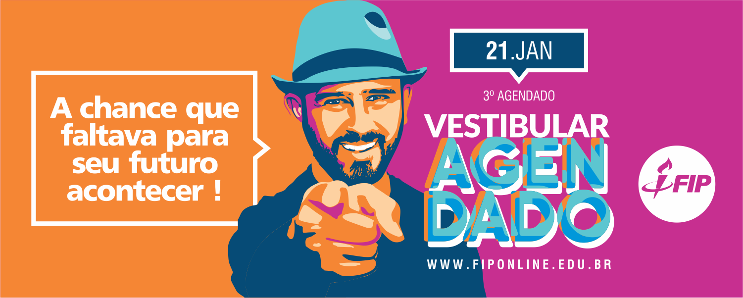 São inúmeras as oportunidades para quem ainda não ingressou no Ensino Superior. As FIP continuam oportunizando possibilidades para você investir no futuro. Estão abertas as inscrições para a próxima prova do Vestibular Agendado 2018.1 que acontecerá dia 21 de janeiro.