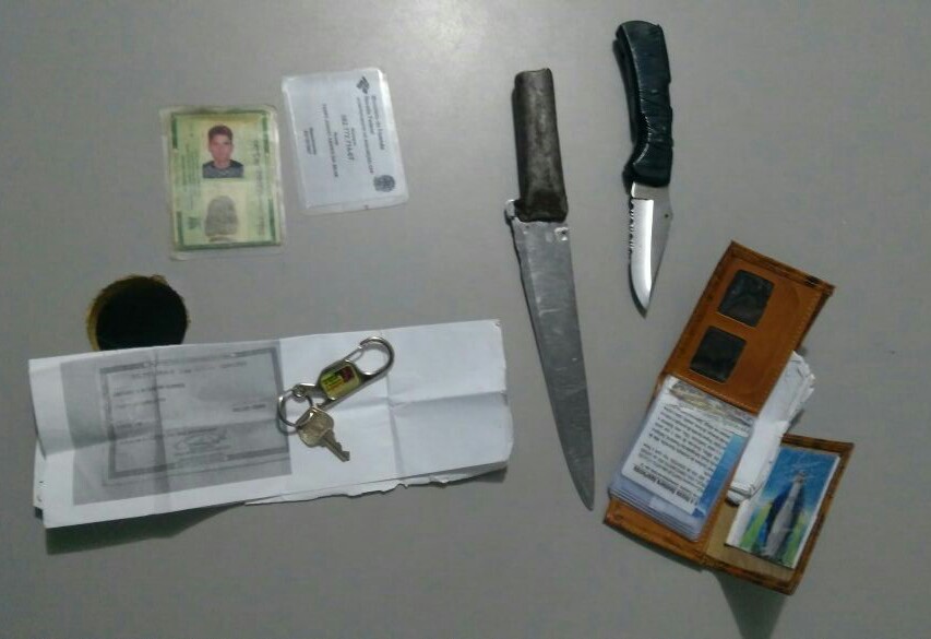 De acordo com informações dos militares das guarnições de Rádio Patrulha, ROTAM e o destacamento de Malta, os acusados utilizaram duas armas brancas para efetuar os roubos, sendo que após o crime, eles fugiram em um veículo Corsa de cor branca em direção a Patos. As guarnições se dirigiram até o Posto de combustível onde interceptaram o veículo e realizaram a abordagem aos acusados.