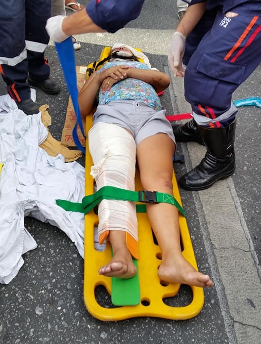 O garoto caiu da moto, mas não sofreu ferimentos. Já sua mãe que não portava carteira de habilitação, ficou gravemente ferida tendo sofrido fratura exposta do fêmur, escoriações e cortes pelo corpo.