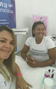 Criativa, ela não ficou só desenhando a bandeira do Brasil não. Começou a fazer outros desenhos, a criar certos enfeites e a coisa ganhou uma proporção não imaginada por ela, que teve que fortalecer sua esmalteria, e hoje pouco tempo lhe sobra para outras atividades pelos muitos clientes que tem. Trabalha de terça a sábado, das 8 às 21 horas.