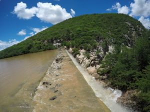 Registramos mais um manancial da região que está sangrando, a Barragem do Caudeloso, em Areia de Baraúnas. Suas águas seguem pelo Rio Farinha até a barragem de mesmo nome.