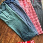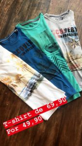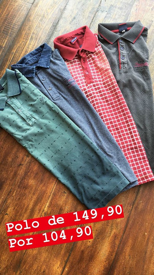 Os descontos são de 30 a 50% em várias peças: calças, camisa polo, camisas de tecido, sapatos, cintos, bermudas, tudo de qualidade e tudo em promoção.
