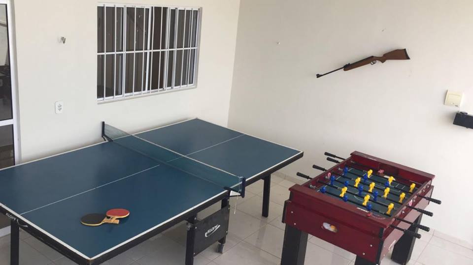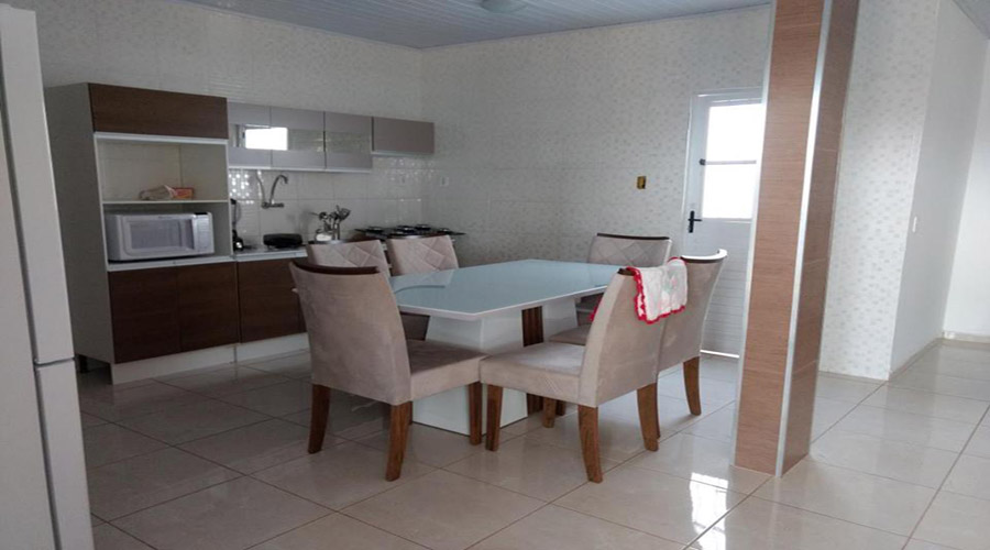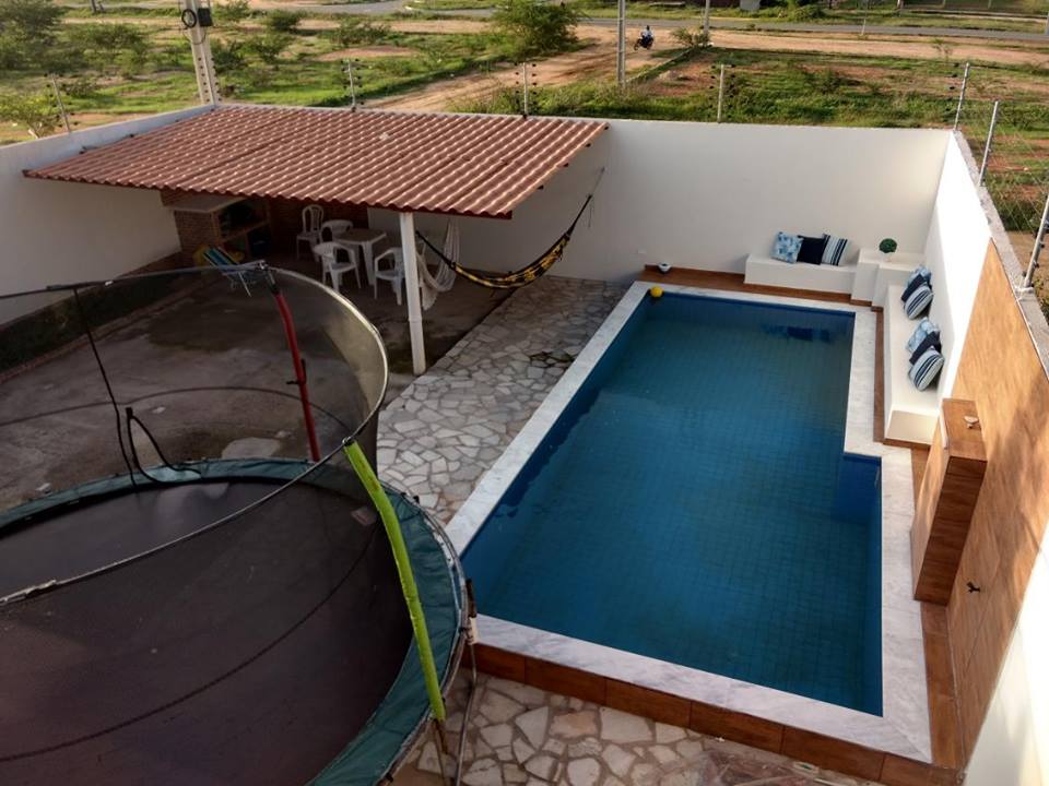 Casa com 03 quartos, sendo 01 suíte; sala única para dois ambientes; cozinha; banheiro social; área de serviço; área de lazer com piscina.