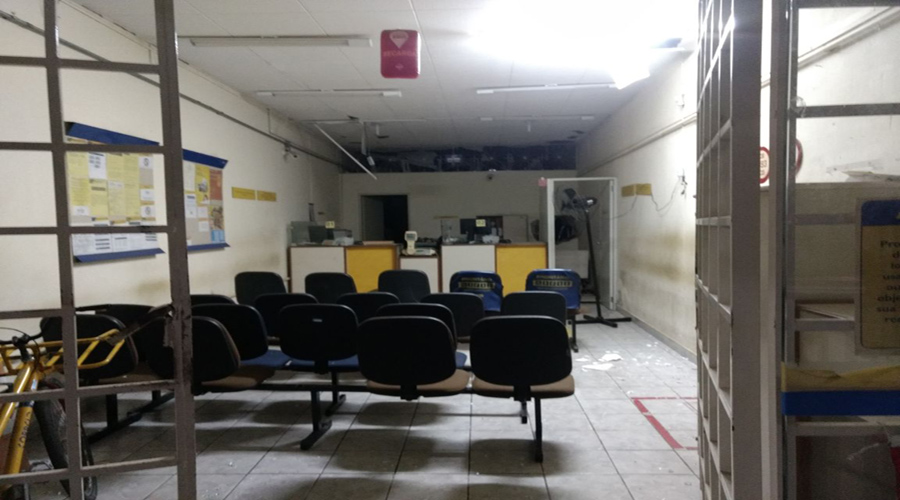 Quebraram a vidraça e a grade de proteção da agência com uma marreta, em seguida explodiram o cofre.