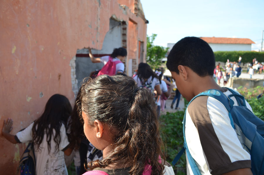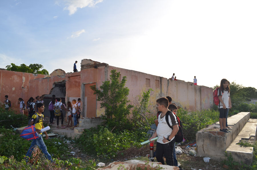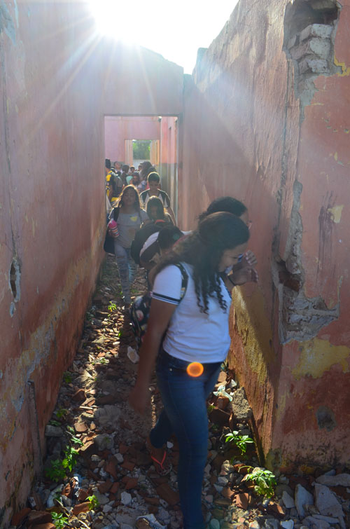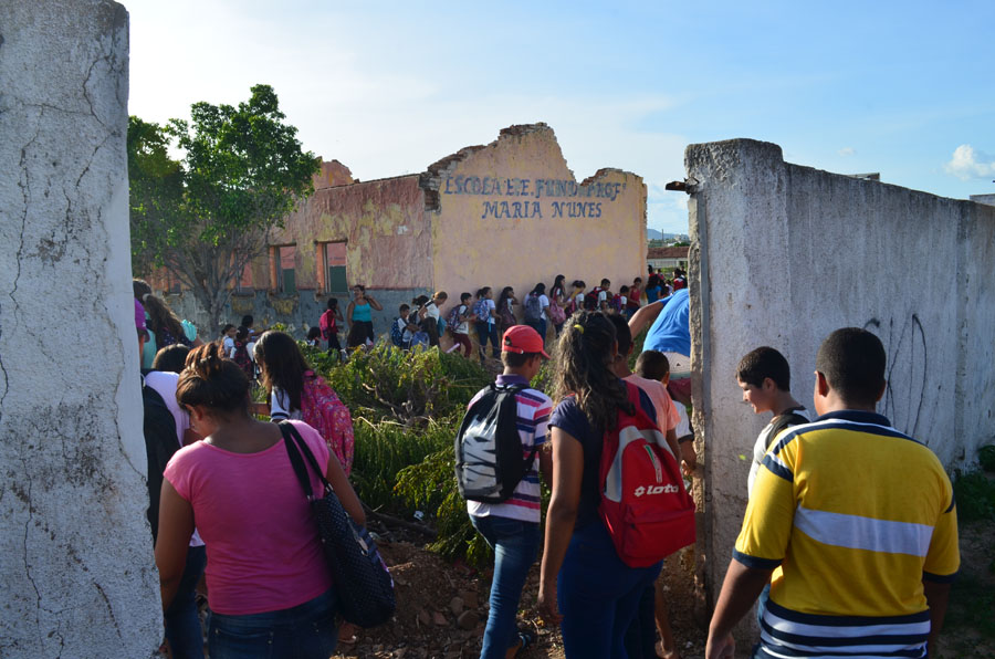 O motivo é a situação crítica do prédio da escola Professora Maria Nunes, que está deteriorado, o mato tomando de conta, paredes caídas, infiltrações etc.