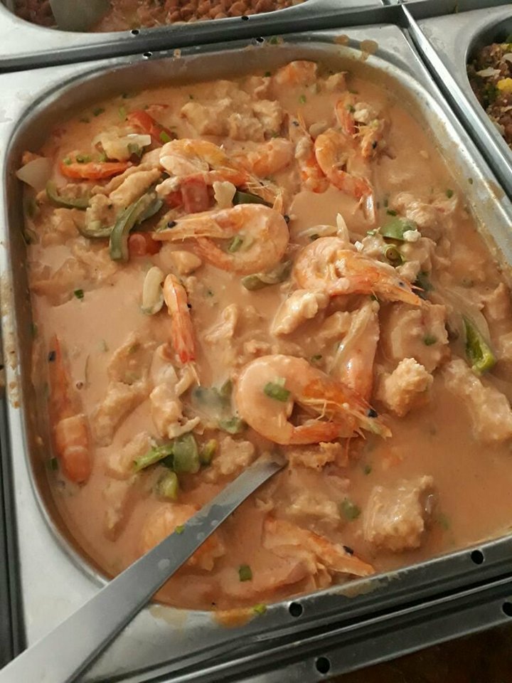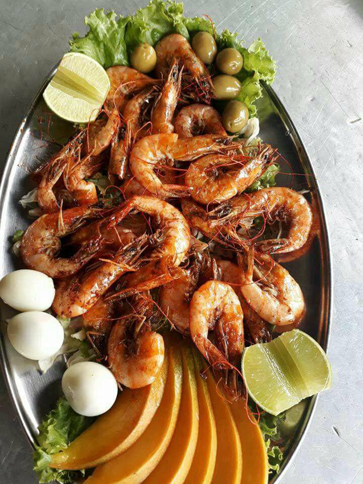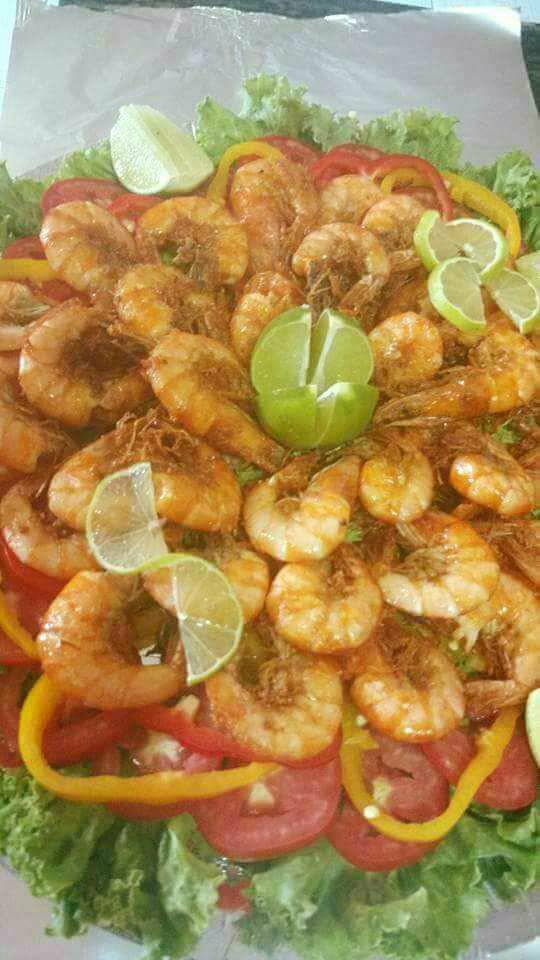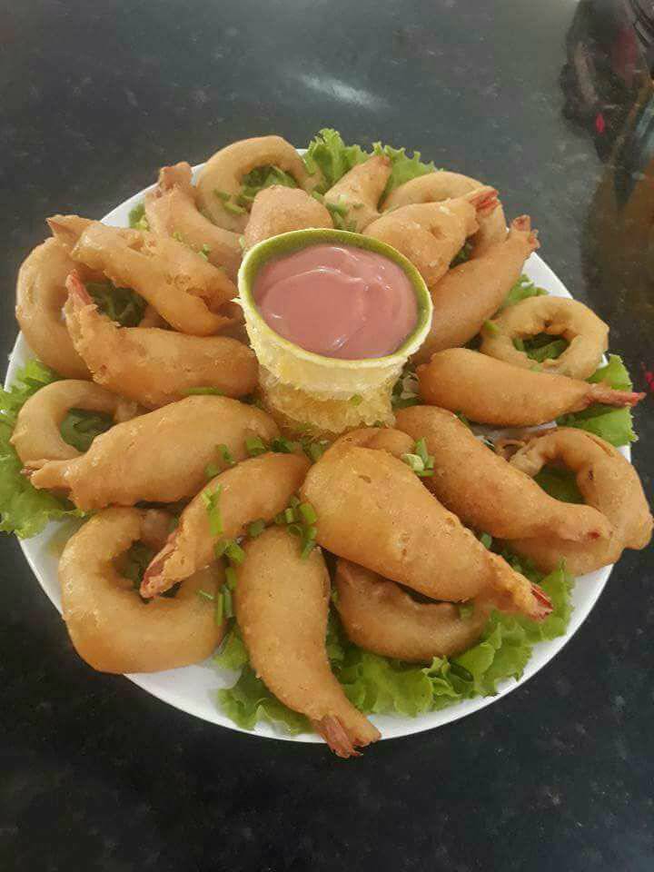 Opções para hoje: Camarão à milanesa, camarão empanado, camarão com alho e óleo, moqueca de peixe com camarão, moqueca de camarão, moqueca de peixe, peixe assado na brasa, peixe ao molho, isca de peixe, bacalhau, filé de peixe ao molho apimentado.