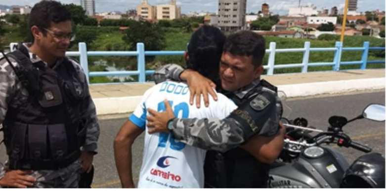 Depois da desistência a vítima abraçou os policiais e agradeceu.