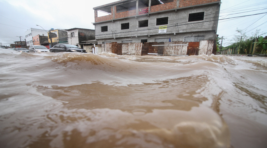 A chuva causou transtornos em diversas áreas do Grande Recife, com alagamento de ruas. Durante seis horas na madrugada desta quarta, foram acumulados 50 mm de chuva, segundo a Prefeitura.