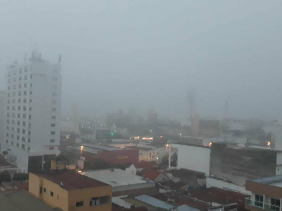 Patos amanheceu sob neblina neste sábado, 14/04. Nas redes sociais a brincadeira é que “a Morada do Sol amanheceu querendo ser a cidade de Gramado-RS. O centro da cidade ficou “escondido” sobre a neblina,