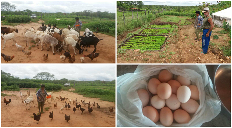 Agora a Folha Patoense destaca o casal de agricultores familiares Geraldo Formiga Cavalcante e Maria das Dores da comunidade rural do Riacho Grande, também em Cajazeirinhas. Animado com as chuvas o casal plantou e já está colhendo hortaliças, frutas, milho, feijão e um pouco de palma forrageira. Além disso, Seu Geraldo e Dona Maria criam e comercializam galinha de capoeira (ovos e carne), caprinos, ovinos e como o açude da comunidade está cheio, até peixes eles estão criando para a venda. “Fico muito feliz em ver o homem do campo produzindo, criando, vivendo daquilo que gosta de fazer e percebo a importância da agricultura familiar, que tem mudado pra melhor a situação dos pequenos produtores”, disse o extensionista rural da Emater Zildo Vicente, que faz um trabalho de acompanhamento junto aos produtores da agricultura familiar da região.