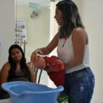 A enfermeira expôs o tema de forma dinâmica, através de slides, e utilizando um boneco no formato de bebê fez várias explicações comentou sobre a importância da amamentação, os cuidados com a pele, hora do banho, cuidados com o umbigo e esclareceu sobre mitos e verdades questionados pelas gestantes.
