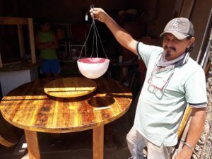 Agostinho é “pau pra toda obra”. É cozinheiro, comerciário, motorista etc, mas agora se dedica integralmente a transformar móveis velhos e troncos em artesanato, chamando atenção de todos pela qualidade e a estética dos seus trabalhos.