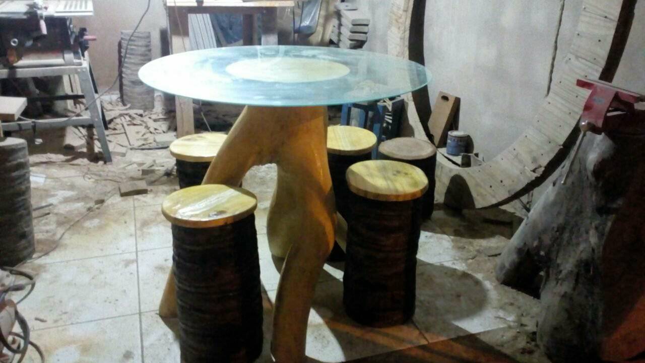 Agostinho pega troncos de árvores velhas e faz cadeiras, mesas e outros utensílios, sempre com muita criatividade. Ele também pega móveis velhos e os transforma em “móveis novos”. Capacetes jogados fora ele transforma em recipientes para plantas, troncos viram cadeiras, galhos viram pernas de mesa, carretéis de madeira ele utiliza para fazer mesas e em suas mãos muitos objetos que as pessoas jogam fora se transformam em artesanato.