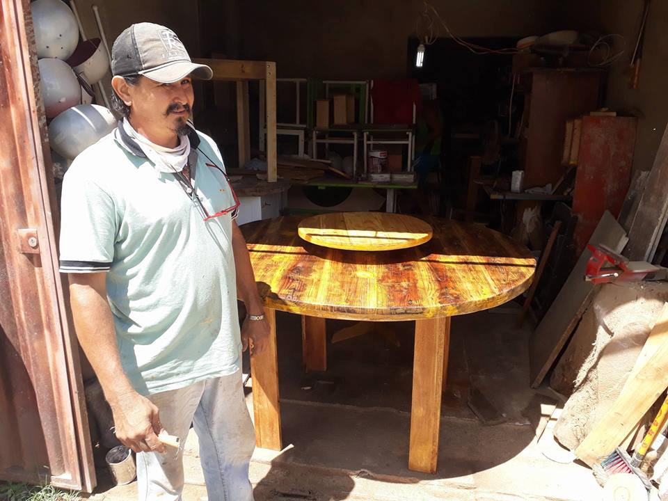 Agostinho é “pau pra toda obra”. É cozinheiro, comerciário, motorista etc, mas agora se dedica integralmente a transformar móveis velhos e troncos em artesanato, chamando atenção de todos pela qualidade e a estética dos seus trabalhos.